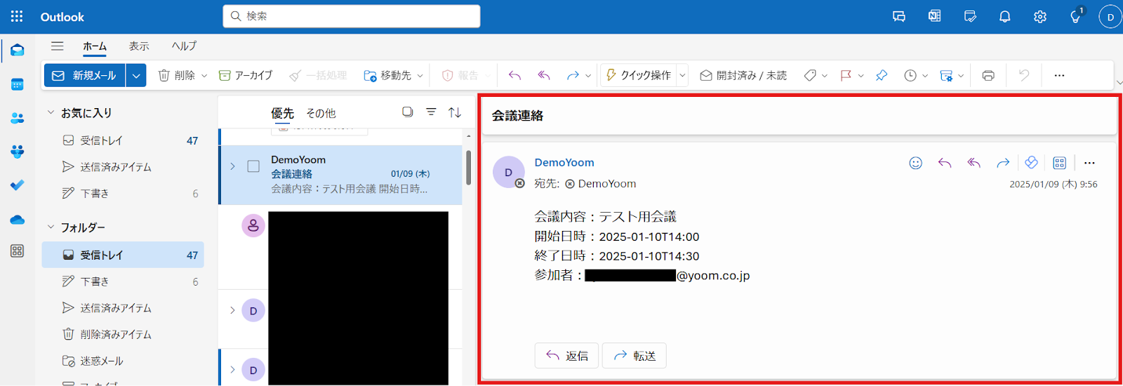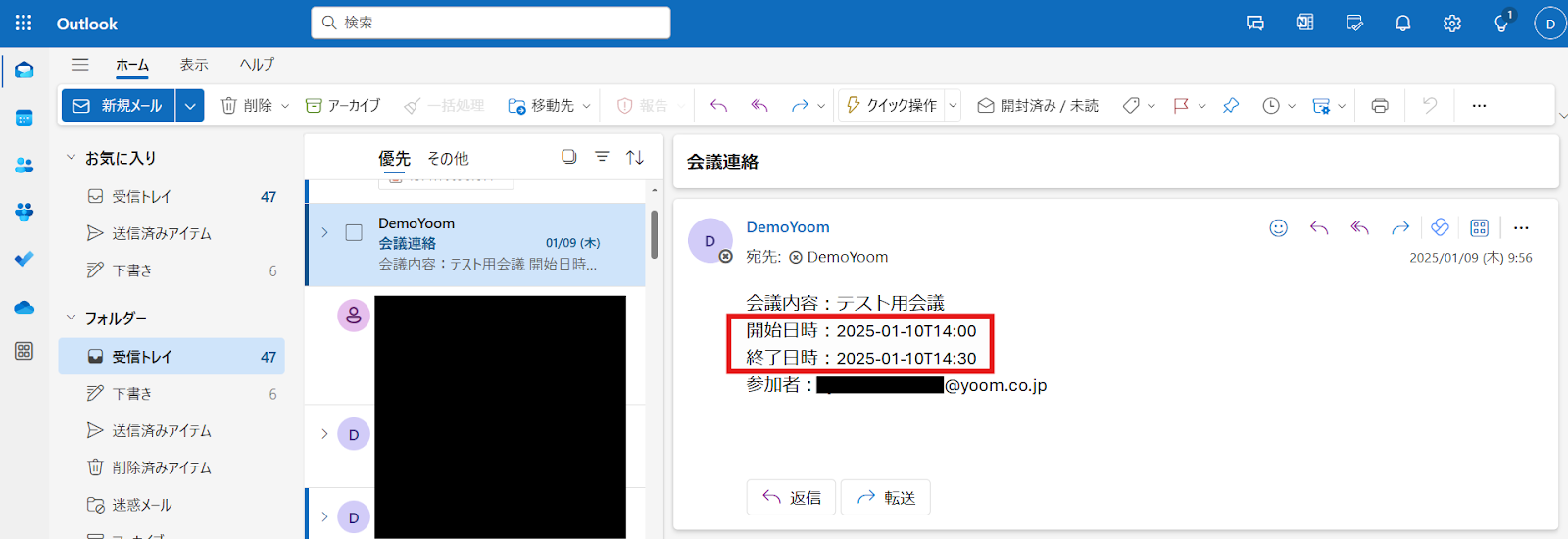 なお、事前にテスト用のメールを作成し、Outlookへ送信しておきましょう。