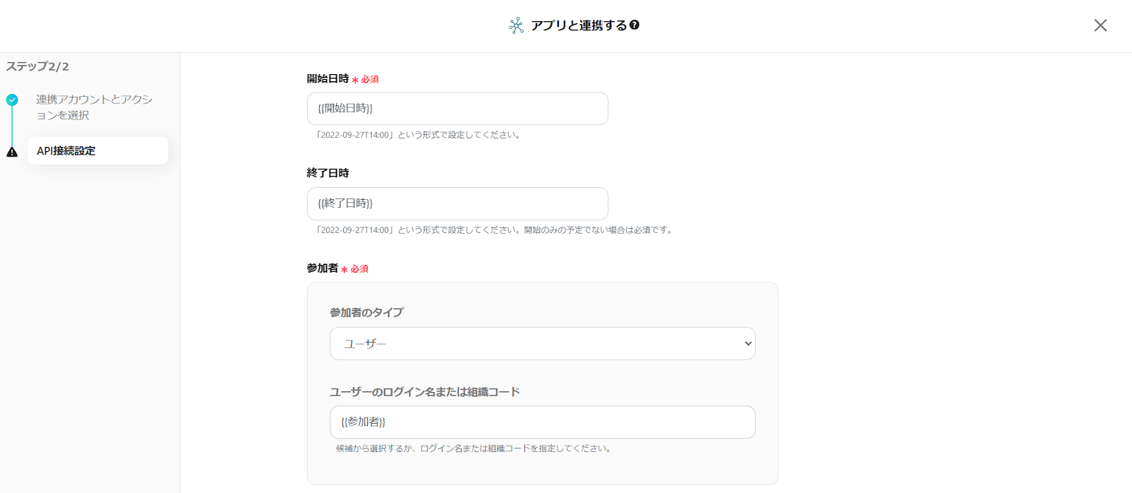 また、Garoonのスケジュールに登録する際、開始日時が必須となります。