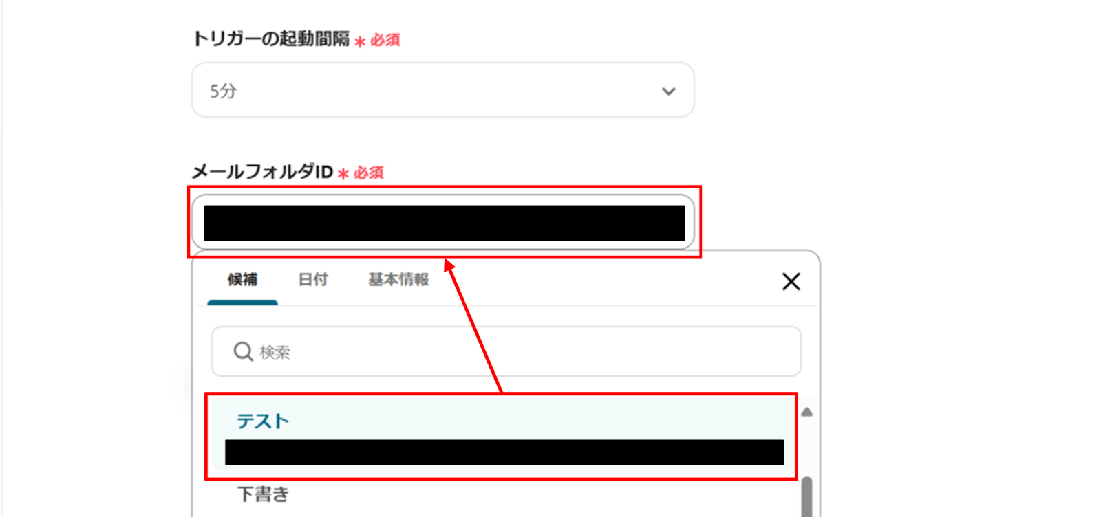 下へ進み、メールフォルダIDを候補から選択します。