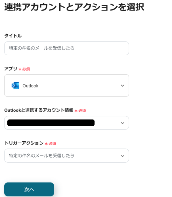 ステップ3:Outlookでアプリトリガーを設定