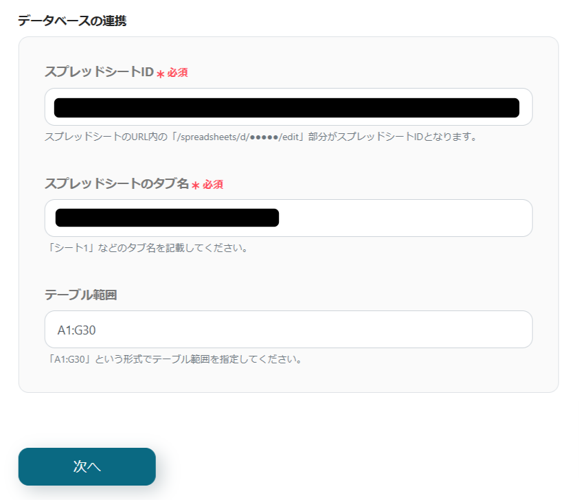 連携の後にシートを準備すると、情報の取得がうまくいかないことがあります。(シート内容をあとから変更する分には問題ありません。)
