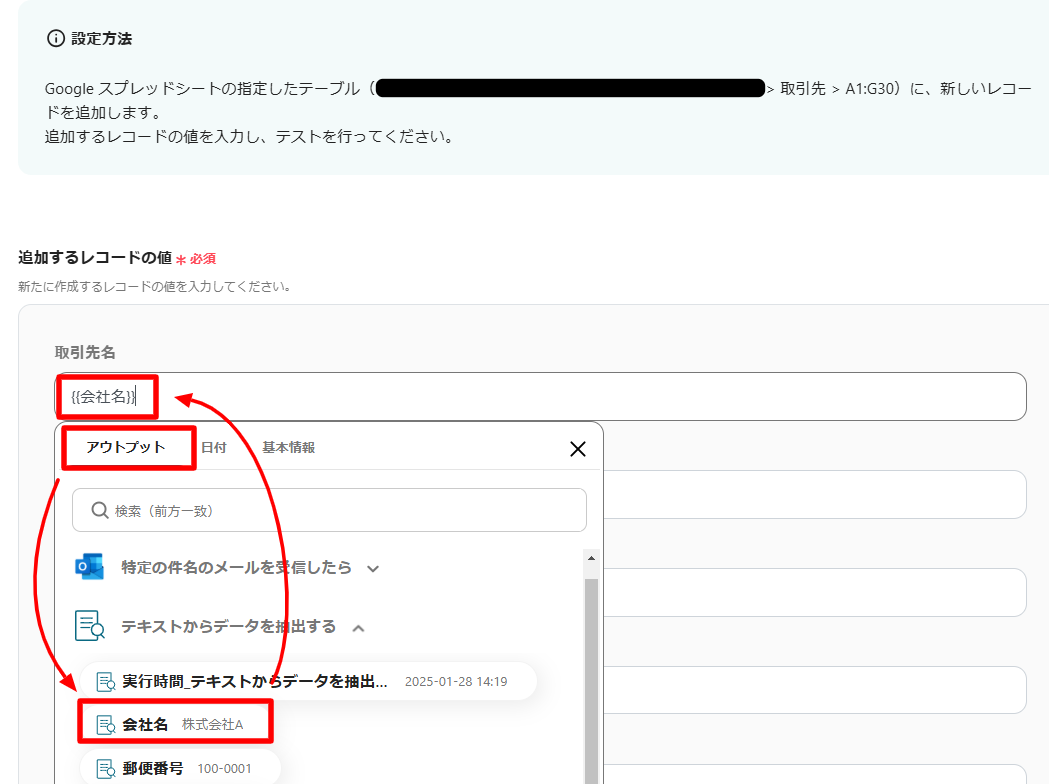 これでOutlookで受信した情報をAIで抽出して、Google スプレッドシートに自動で反映するようになりました。