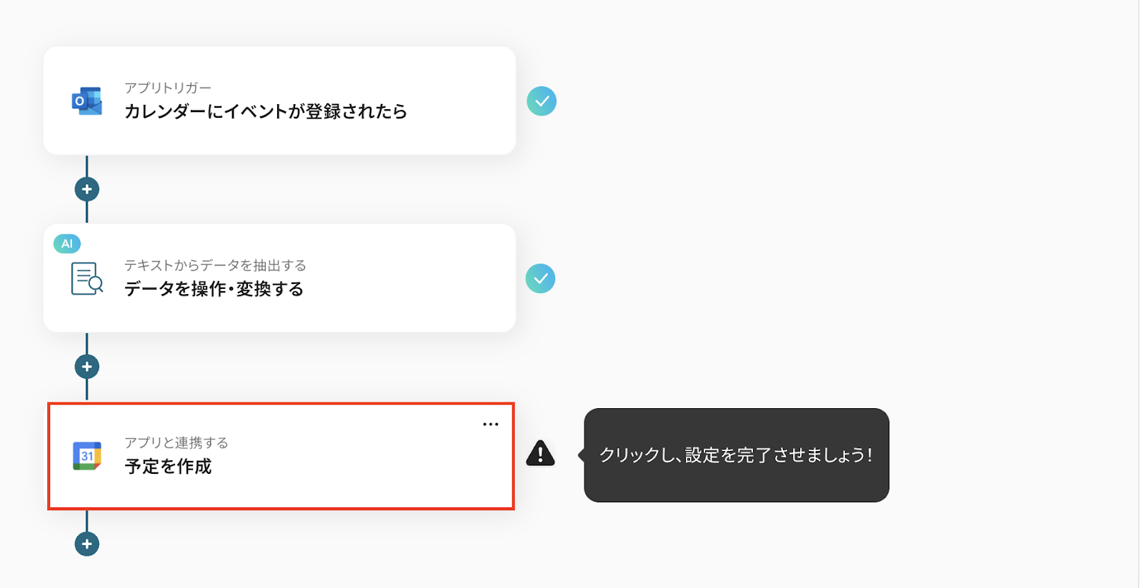 ステップ5:Googleカレンダーに予定を作成する設定
