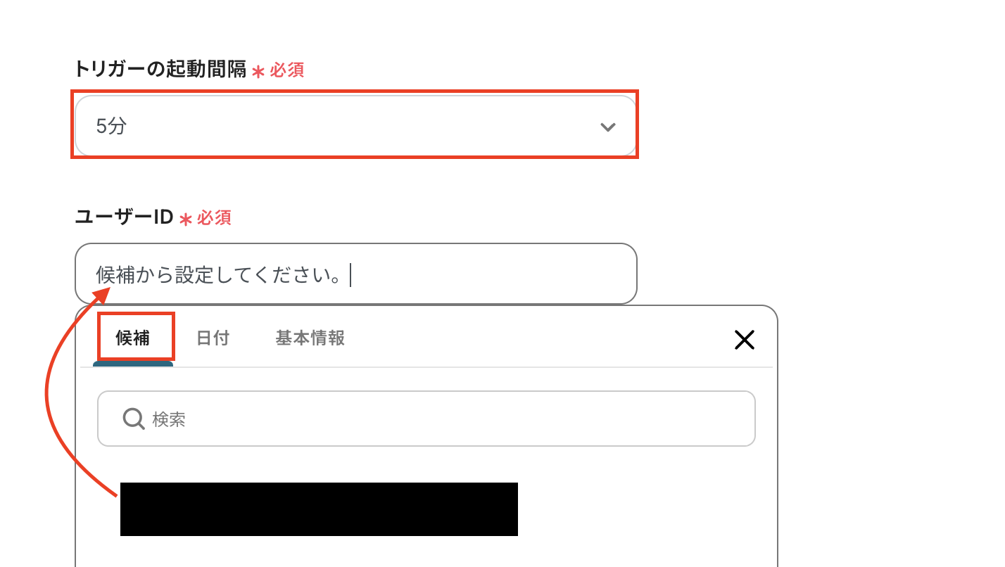 ユーザーIDを候補から選択してください。
