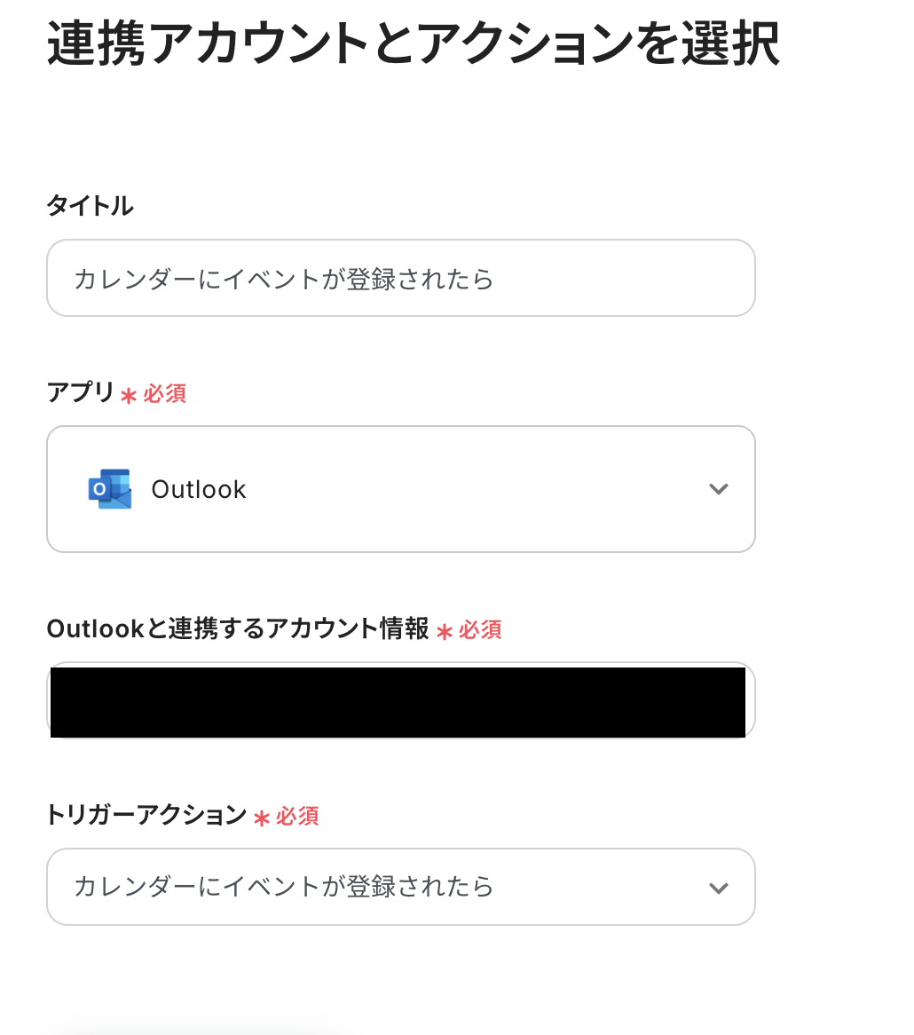 Outlookと連携するアカウント情報は、先ほど連携したアカウントが表示されています。