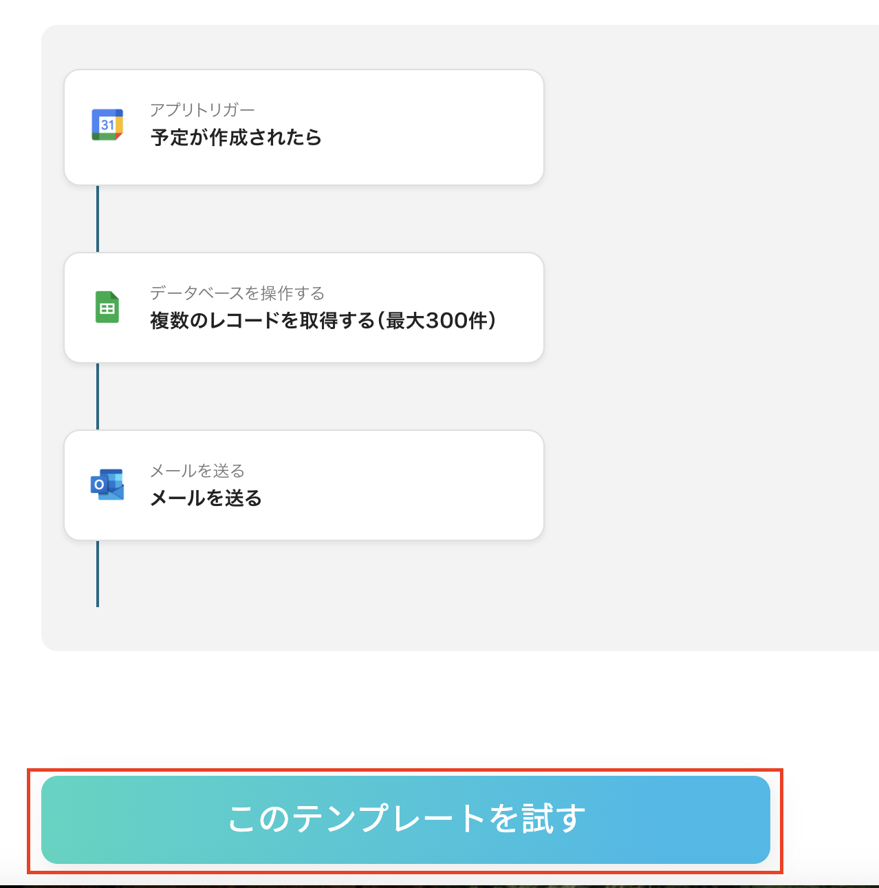 このワークフローを活用すれば、Googleカレンダーに新しい予定が追加された瞬間に、自動でOutlookを通じてリストのメンバーにメールを送信できます。