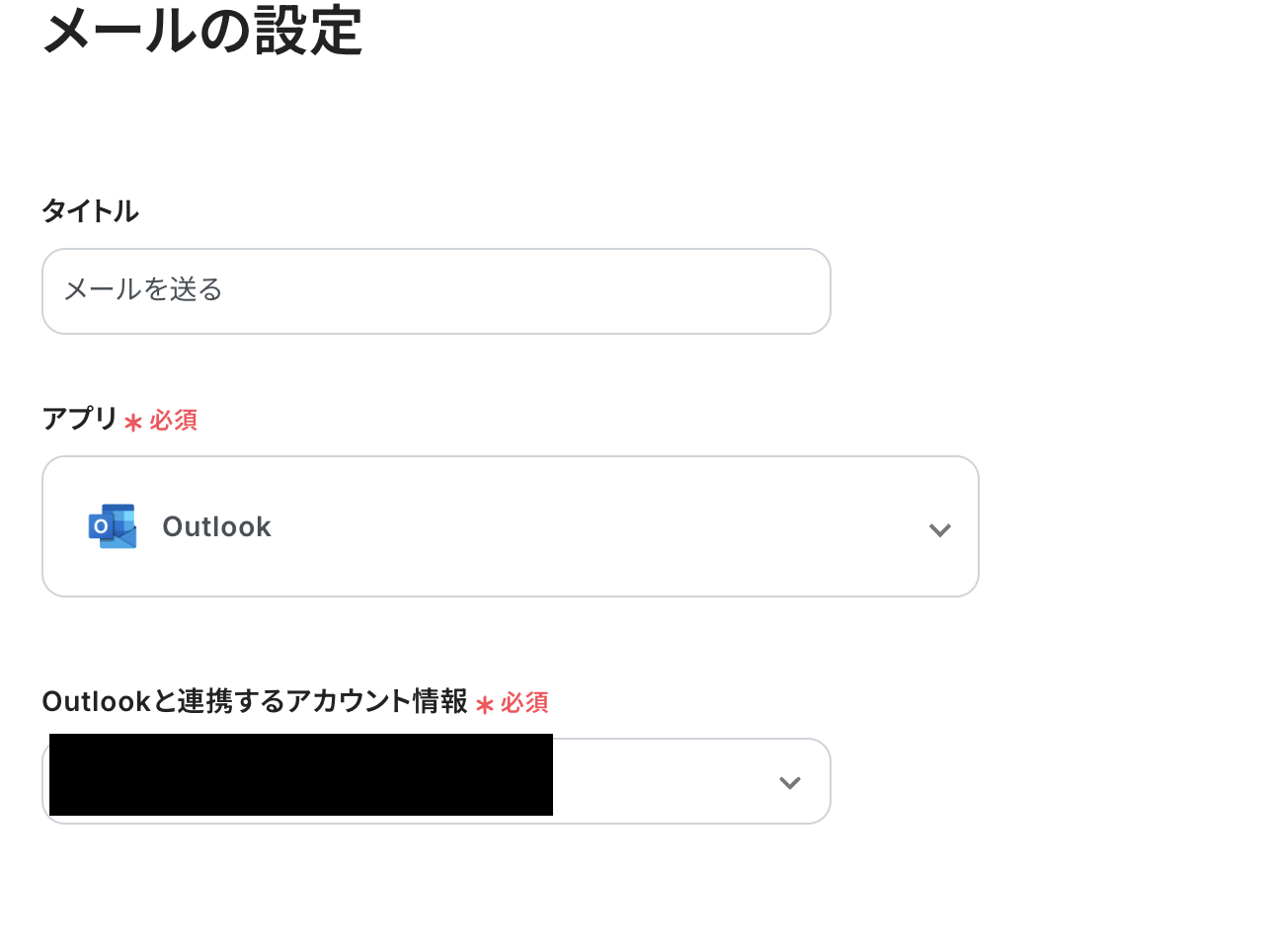 タイトルと連携するアカウント情報を任意で設定し、アクションはテンプレート通りのままスクロールします。
