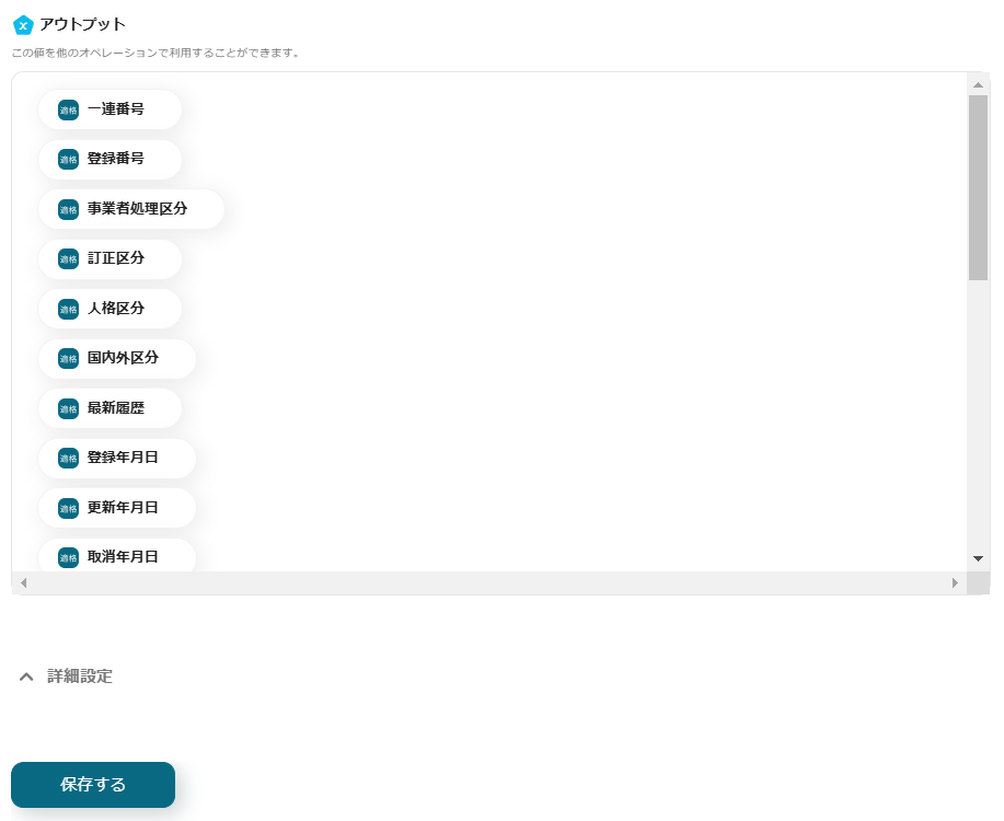 ※追加で抽出したい項目には、登録番号が記載された項目を設定します。