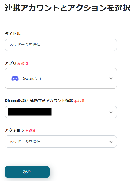 2.Discordと連携するアカウントを確認し、「次へ」をクリックします。