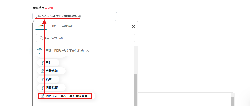 登録番号は、「画像・PDFから文字を読み取る」というタブから設定してください。