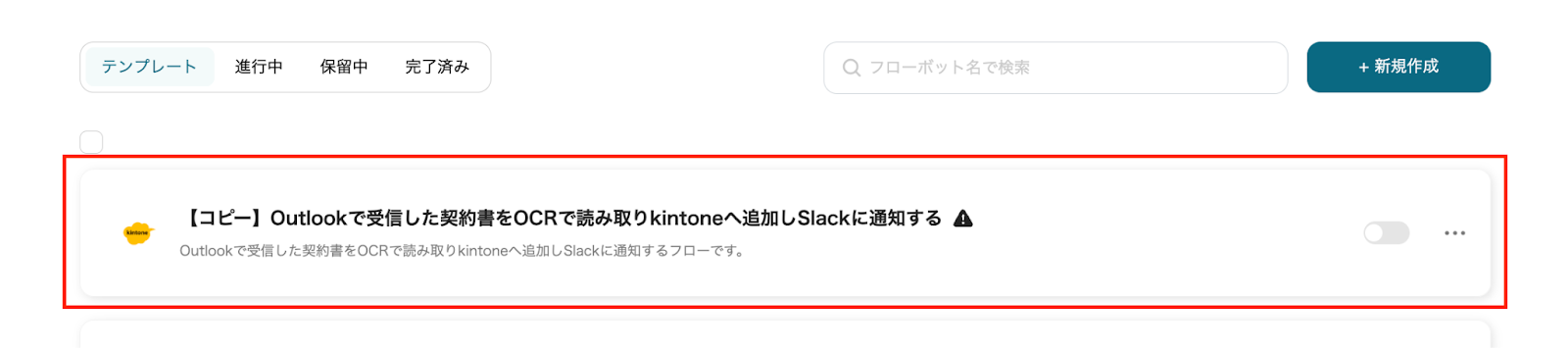 Yoomアカウントの画面左側のマイプロジェクトから「【コピー】Outlookで受信した契約書をOCRで読み取りkintoneへ追加しSlackに通知する」をクリックしてください.。