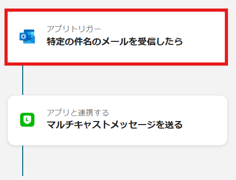 - Outlookのトリガー設定およびLINE公式アカウントのアクション設定