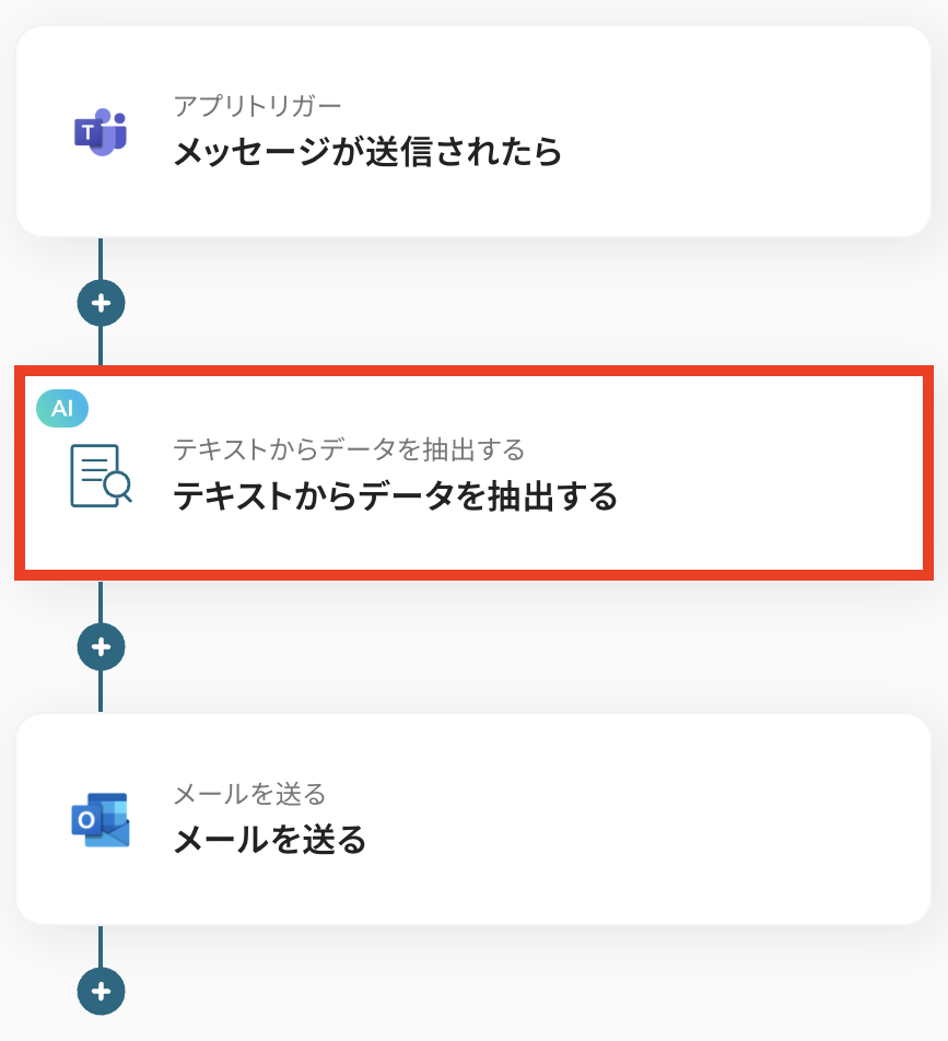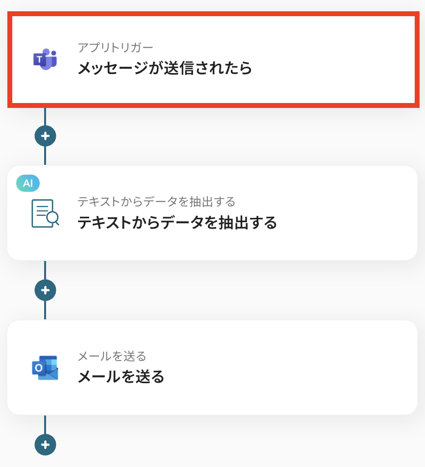 最初のトリガーとテキストを抽出するアクションのみ設定が違うため、解説していきます。