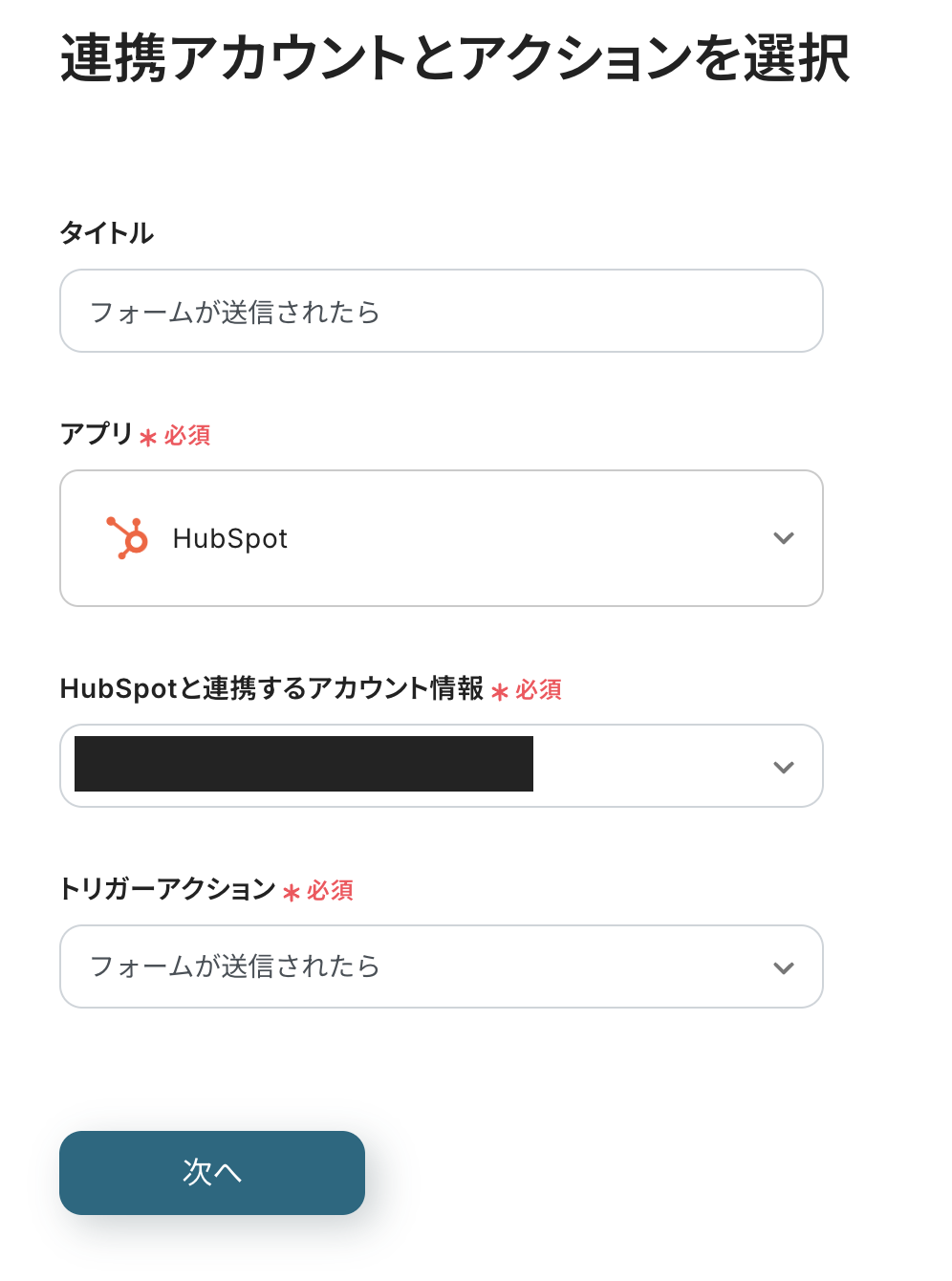 - フォームID:Hubspotのフォームをまだ作成していなければ、先に作成しましょう!作成後、以下の入力欄をクリックし、表示される候補から選択できます。