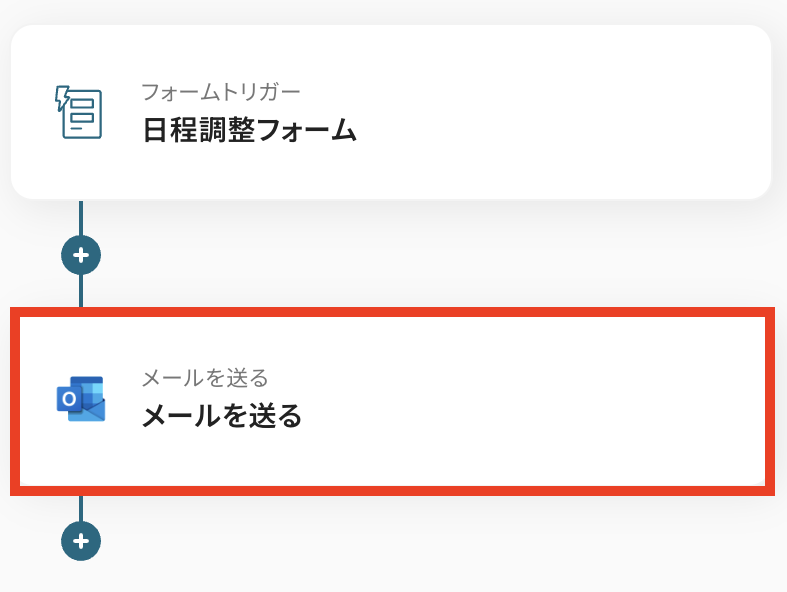 次に、フォームで回答された情報をもとに、Outlookで日程調整メールを送信するアクションを設定します。