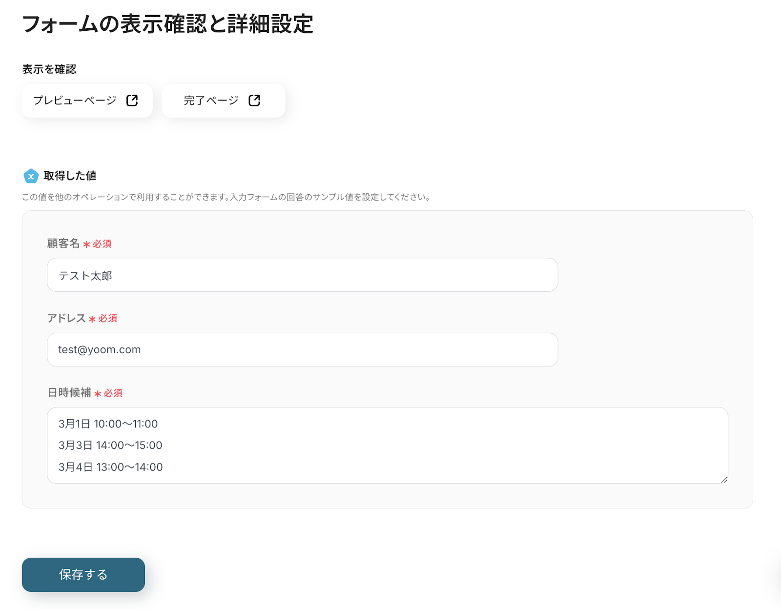 入力が完了したら「保存する」をクリックし、フォームの設定は完了です!