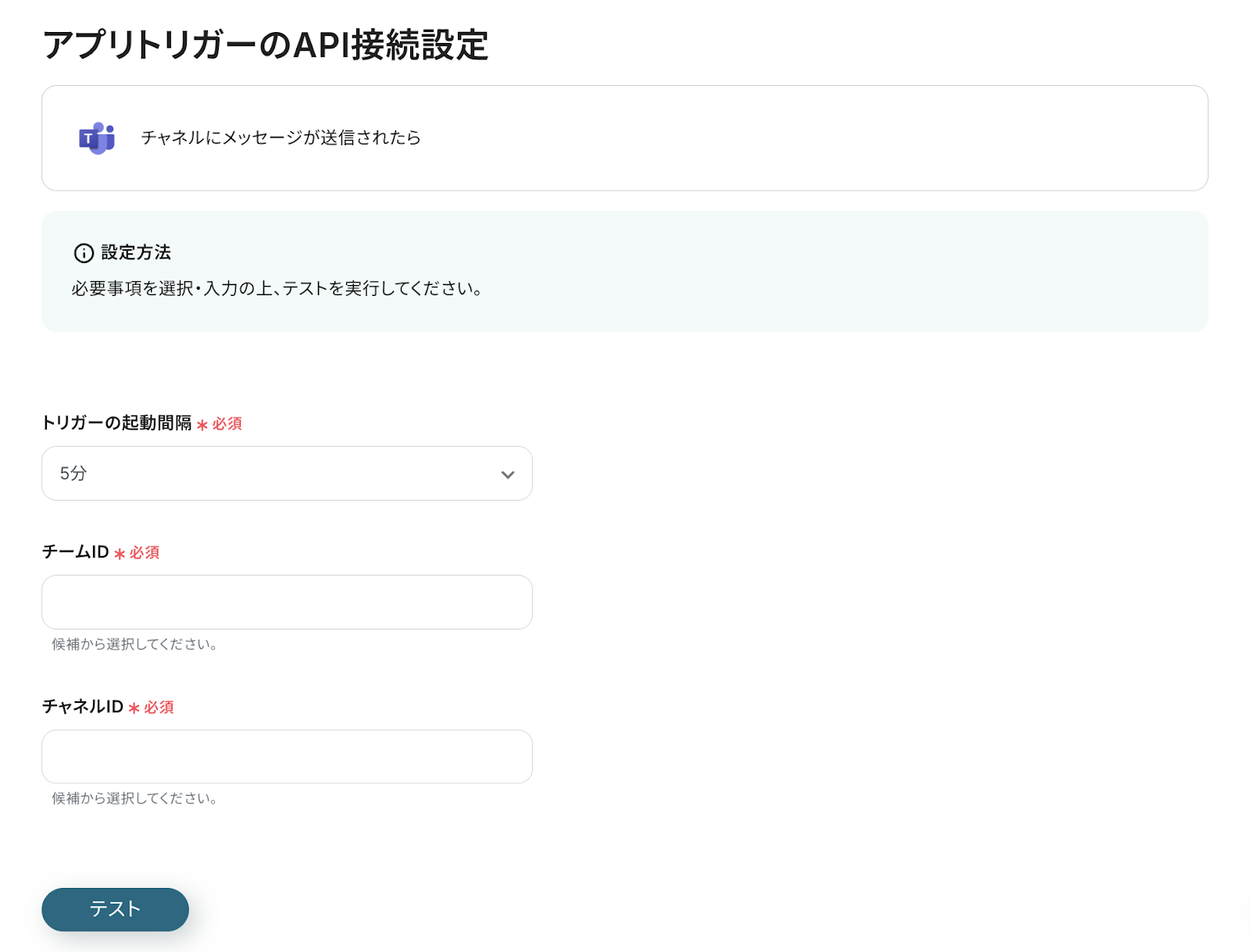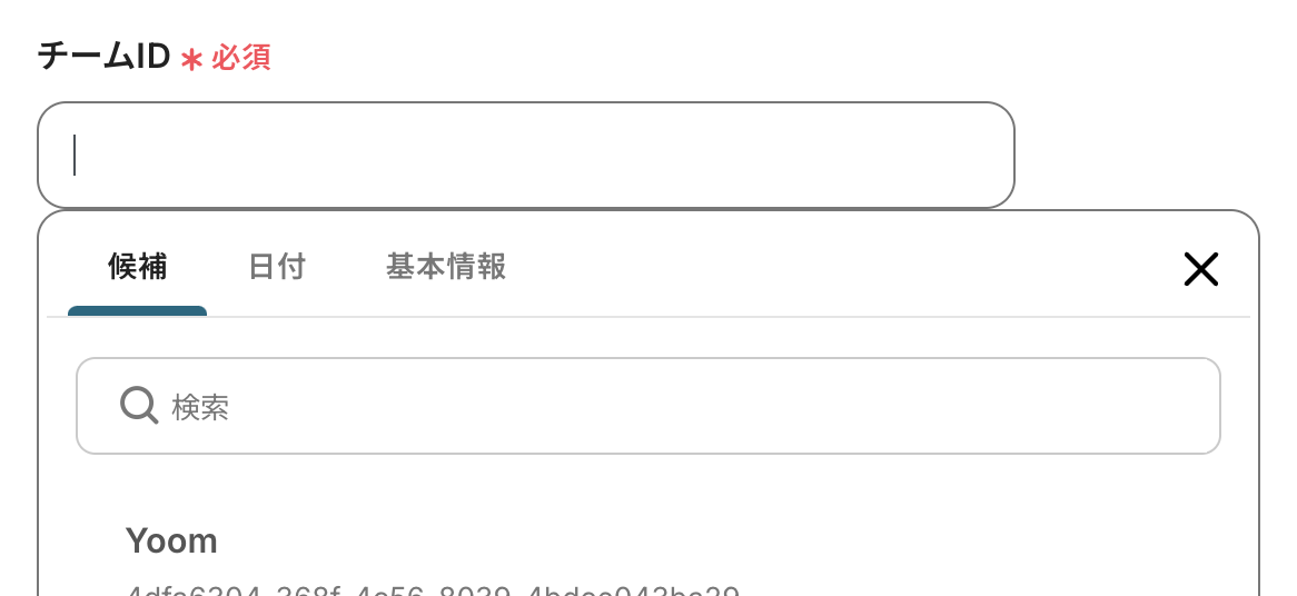 - チームID、チャネルID:入力欄をクリックし、候補から選択できます。