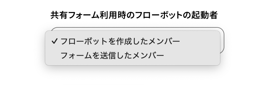 - 共有フォーム利用時のフローボットの起動者:以下の2択から選択できます。