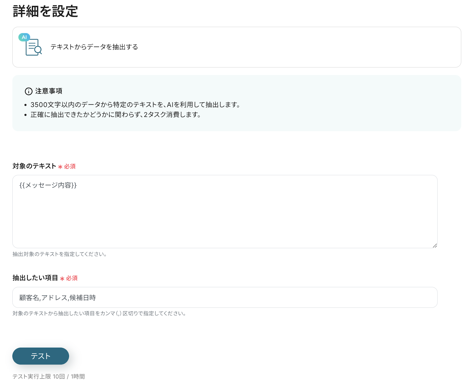 これでテキスト抽出のアクション設定は完了です。以降のフローは、先ほどご紹介したステップ4以降と同様に設定を進めましょう!