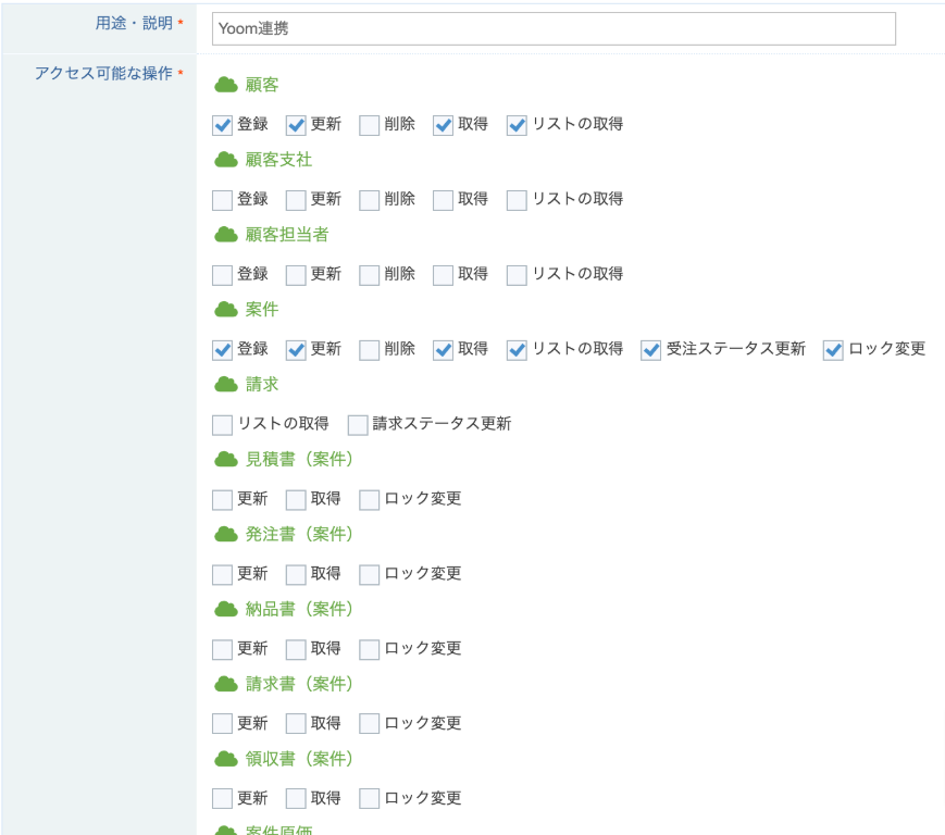 「新規トークン生成」をクリックし、Yoomで操作する項目にチェックを入れます。