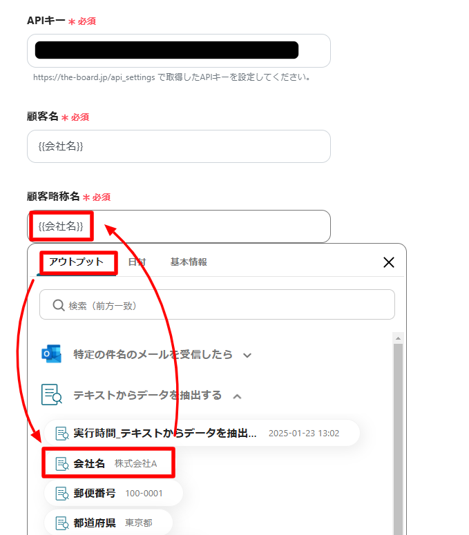 これで、Outlookに送られてきたメールの内容に従って、自動でboardで顧客の登録がされるようになりました。