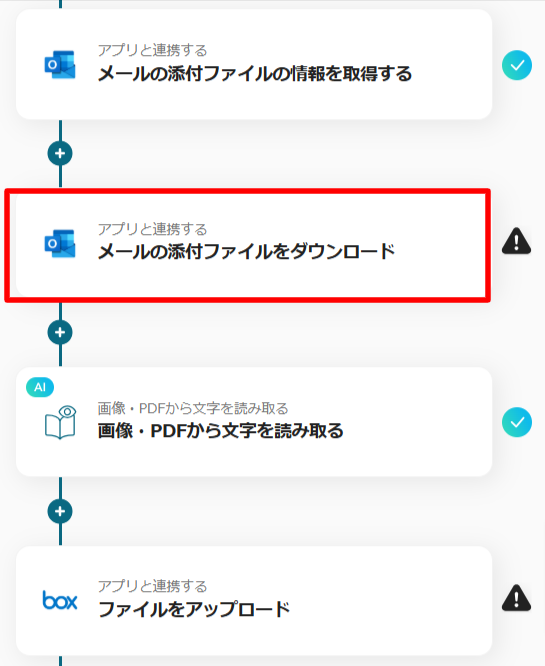 続いて「メールの添付ファイルの情報を取得する」の設定です。