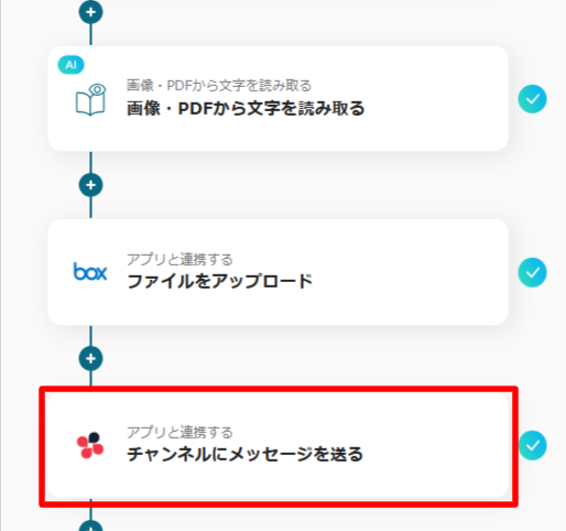 普段業務で使っているコミュニケーションツールをフローの最後に追加すると、ファイルがアップロードされたことを通知で受け取ることができます。
