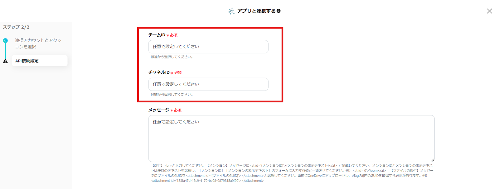 Microsoft Teamsへ投稿する際の内容を設定します。