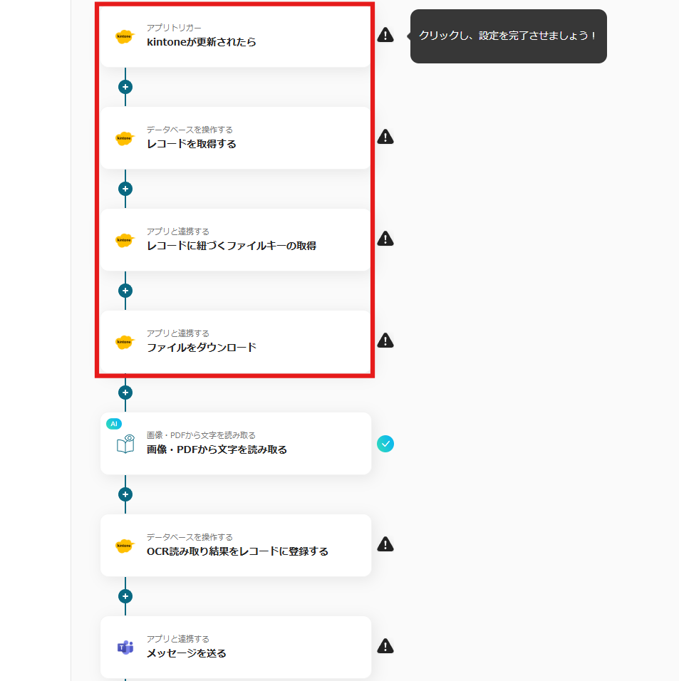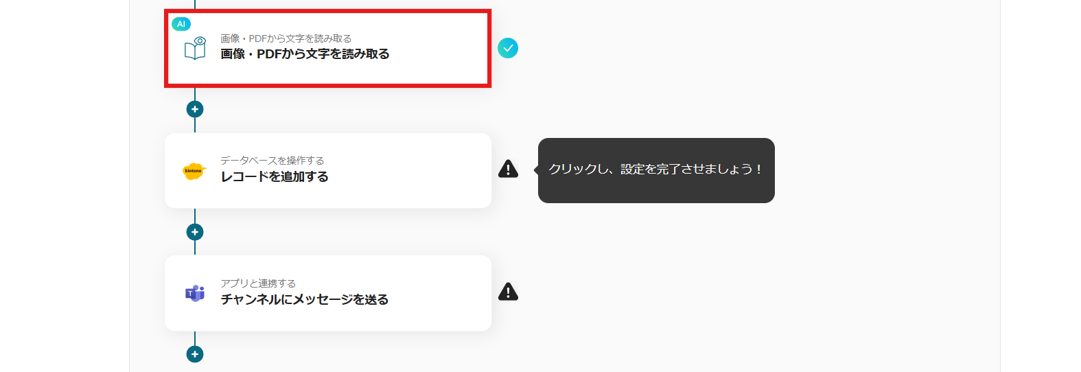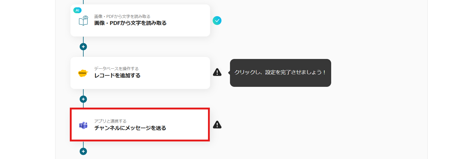 Outlookを介さず、直接kintoneの特定のアプリにPDFを添付することも可能です。今回紹介したフローと同じく書類の内容を読み取り、kintoneへデータを追加してからMicrosoft Teamsへ通知可能です。