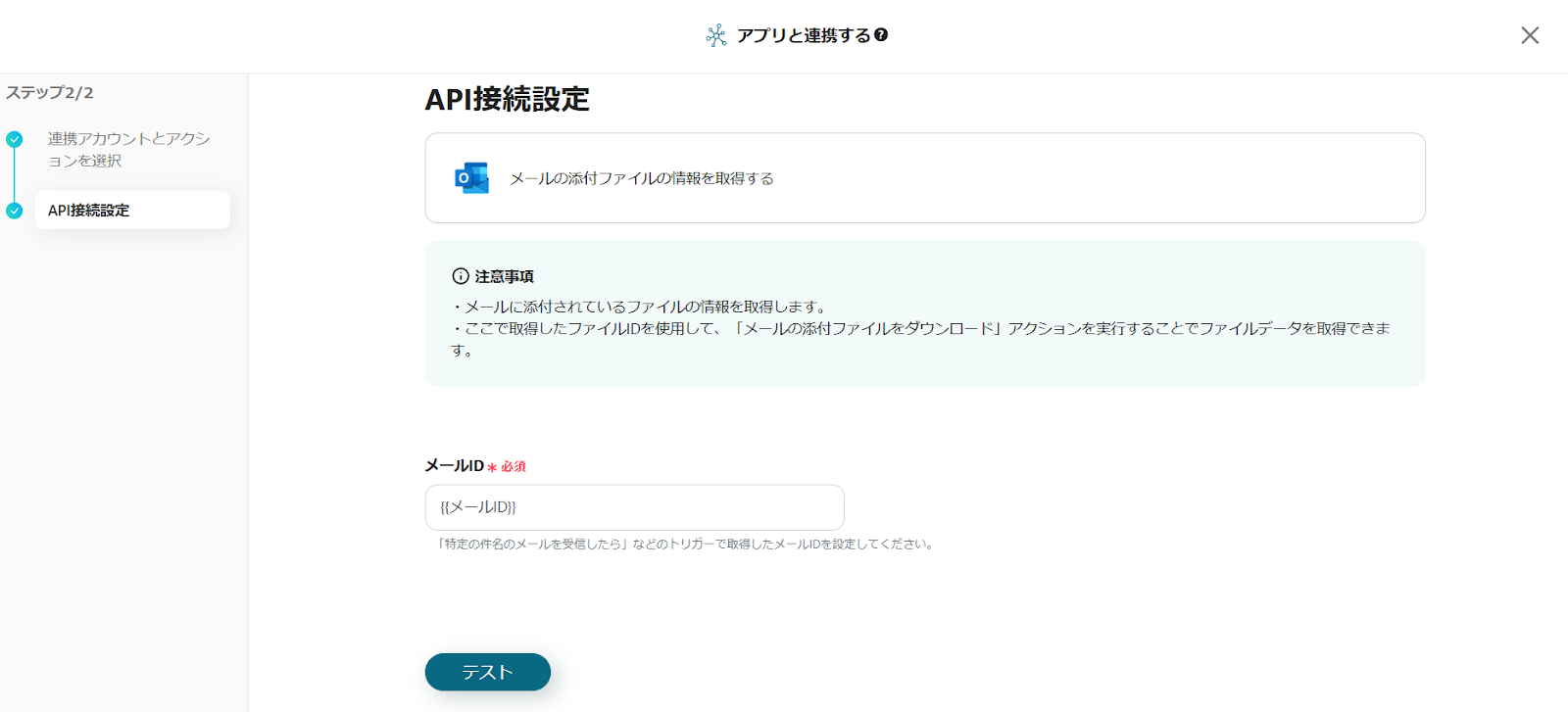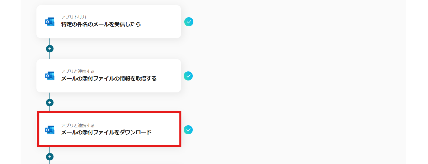 「メールの添付ファイルの情報を取得する」をクリックします。
