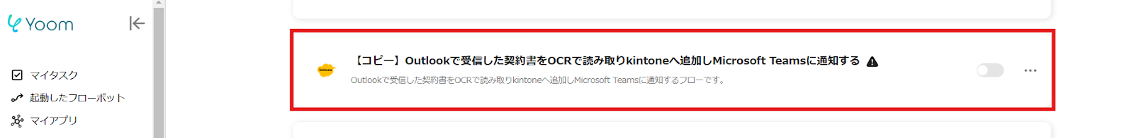 「【コピー】Outlookで受信した契約書をOCRで読み取りkintoneへ追加しMicrosoft Teamsに通知する」をクリックします。