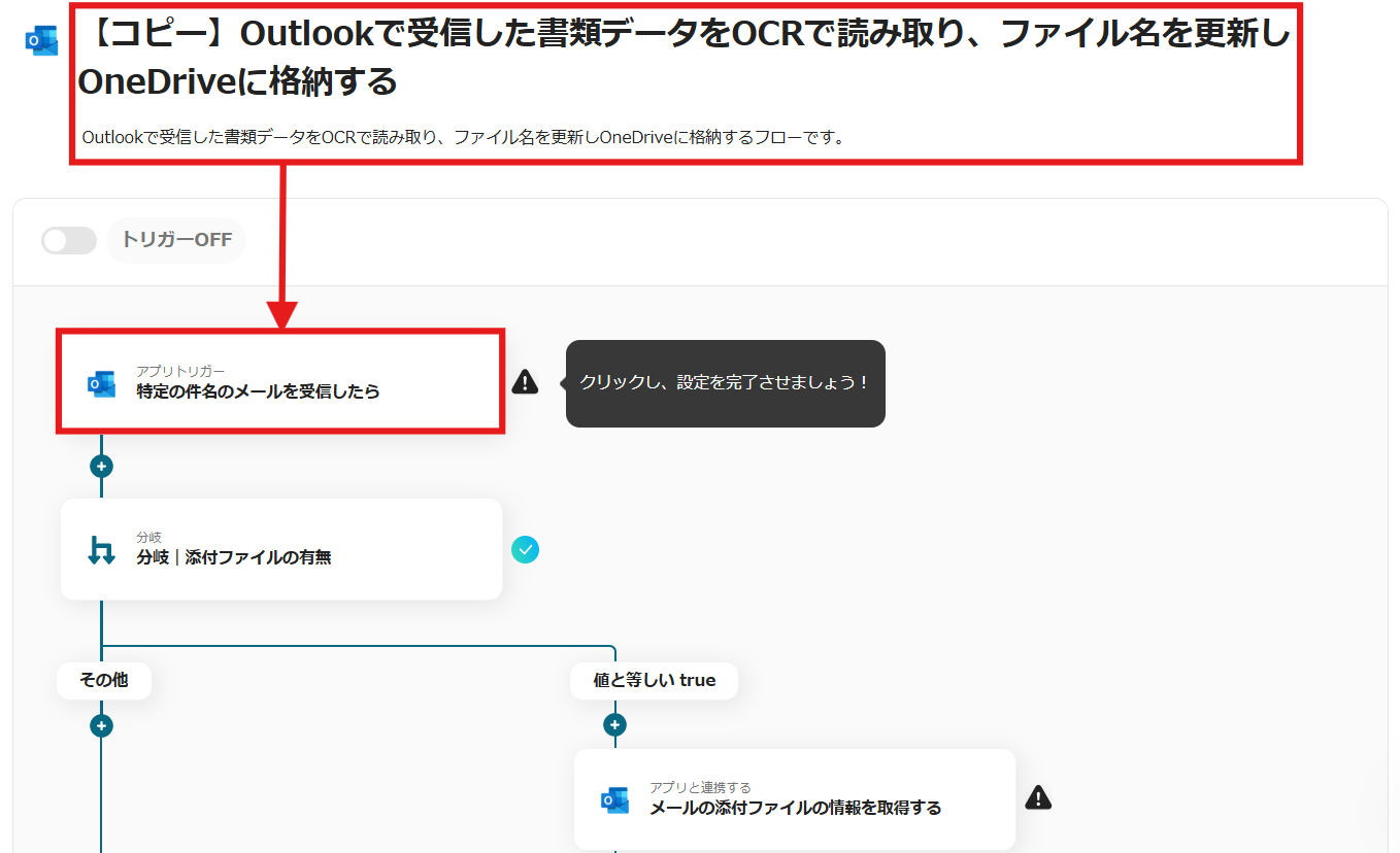 これにより、書類が届くたびに手動でデータを確認し、OneDriveに保存する手間が省けます。