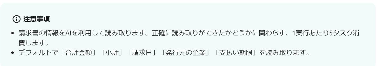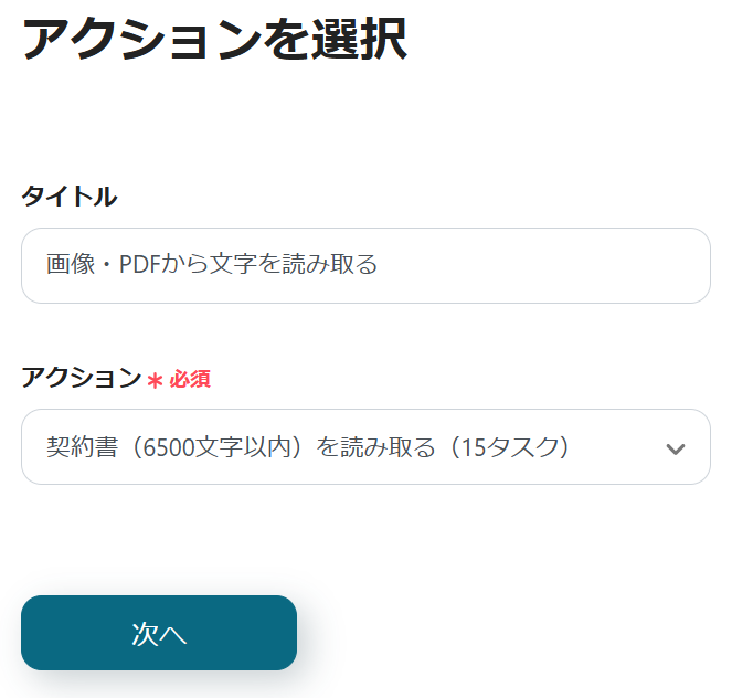 次に、添付されたファイルの情報をAIを利用して読み取る設定を行うため、「画像・PDFから文字を読み取る」をクリックしましょう。