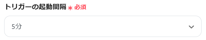 以下の画面が表示されるので、「トリガーの起動間隔」を設定しましょう。