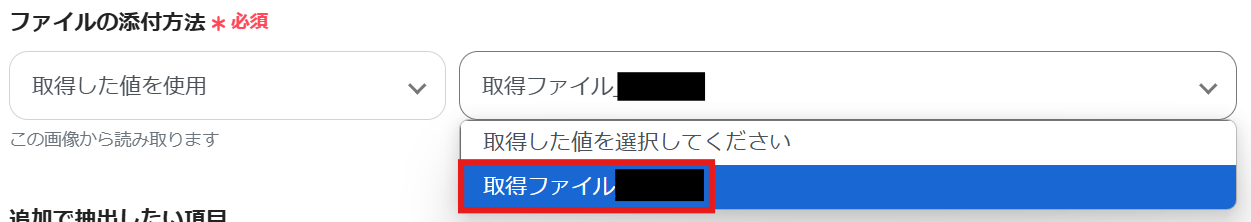その下に「追加で抽出したい項目」が表示されていますが、今回は使用しないので設定は行いません。