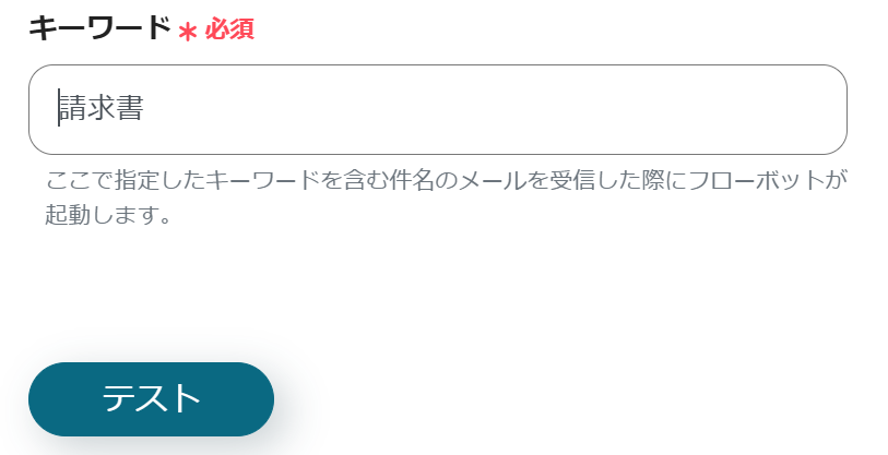 こちらで設定したキーワードが件名に含まれていると、フローボットが起動されます。