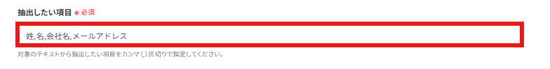 - AI機能では、メール本文から抽出したい項目(例:会社名、氏名、問い合わせ内容など)をカスタムすることができます。