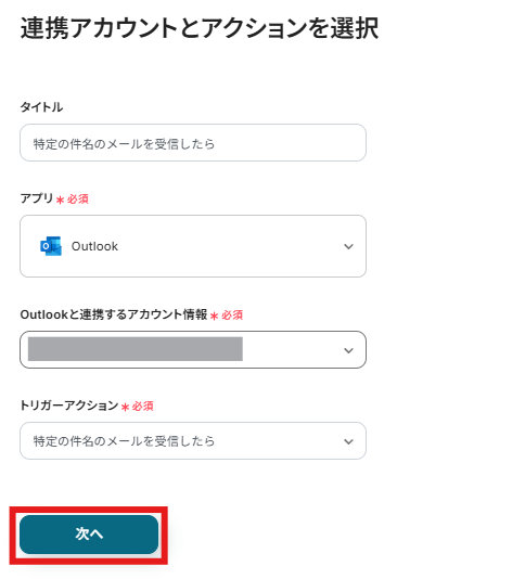 ステップ3:Outlookのトリガー設定