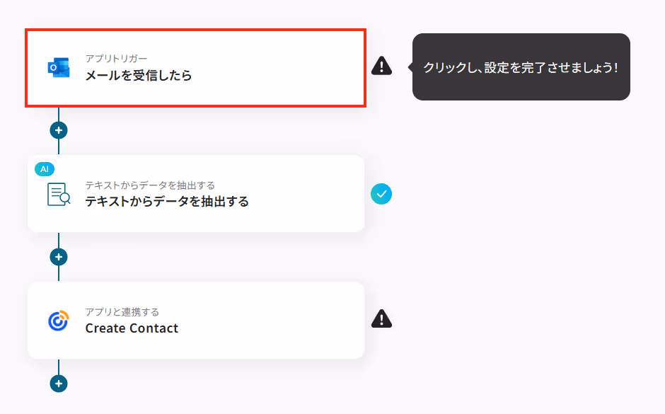 例えば、受信メールをもとに他ツールへ情報を登録したり、メール内容に基づいたフォローアップを自動化できます。これにより、営業担当者やカスタマーサポートの業務負荷を軽減できます!
