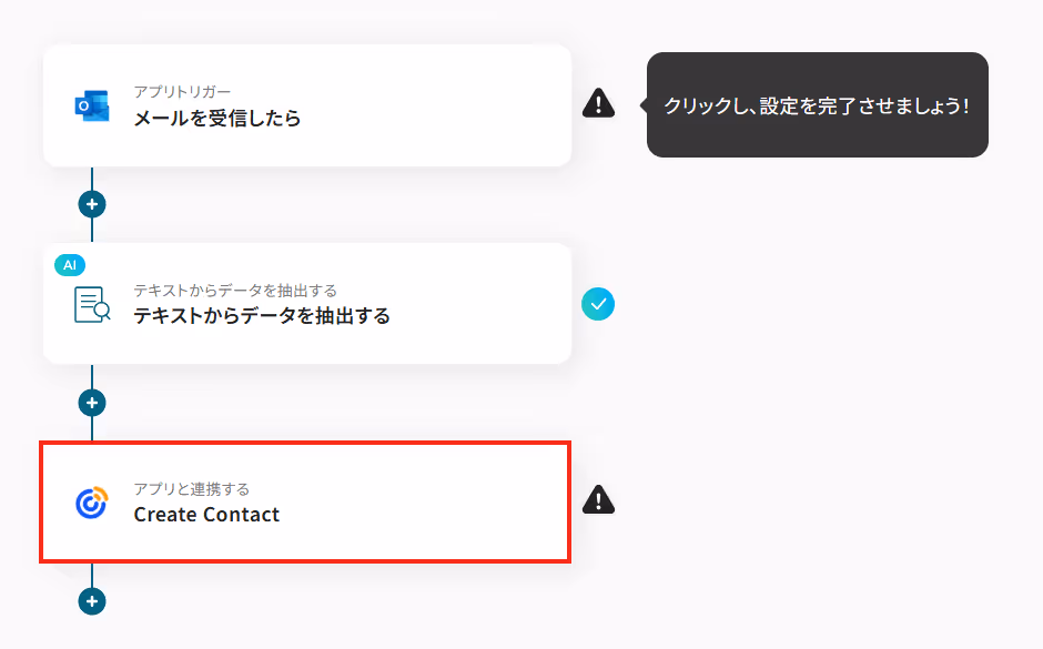 1.アプリと連携する「Create Contact」をクリックしましょう。