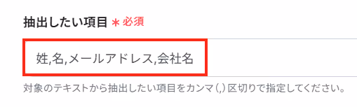 「抽出したい項目」は、メール本文データから抽出したい項目を設定します。