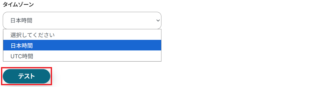 最後に任意でタイムゾーンを選択してテストしてください。