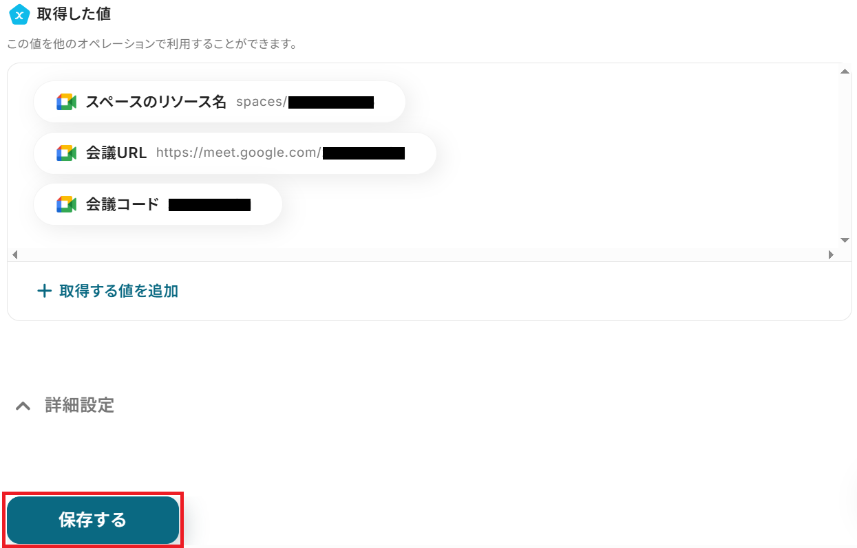 ステップ4:Google Meetのアクション設定