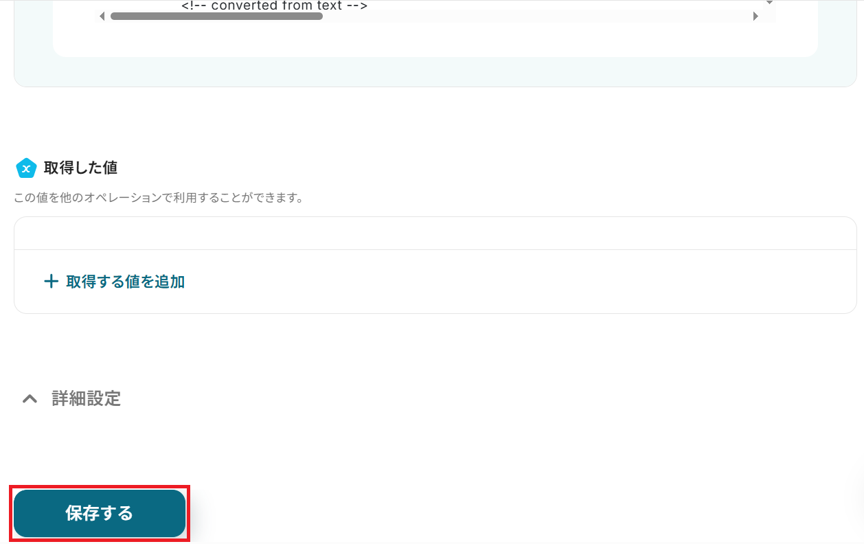 テストが成功すると、取得した値が表示され、先ほど作成したOutlookのイベントデータが確認できます。「保存する」をクリックして完了です!