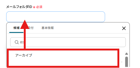 メールフォルダIDは、入力項目をクリックし、表示される候補から選択しましょう。