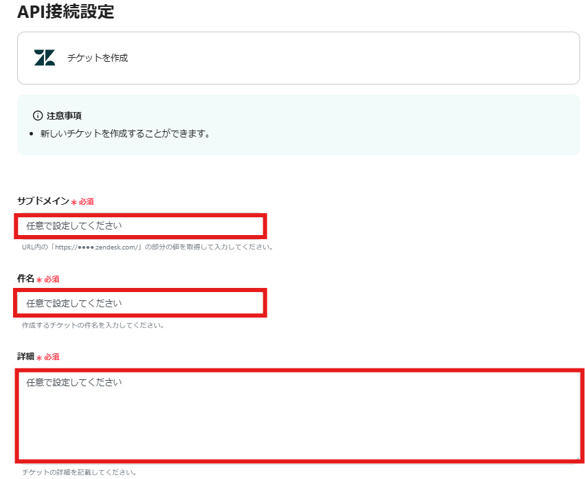 ・キーワード:チケットを作成するためのトリガーとなる件名のキーワードを設定します。(例:重要)