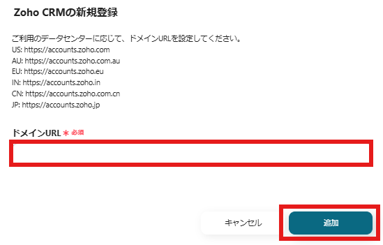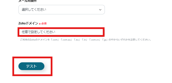 いかのZohoドメインの箇所を入力し「テスト」→「保存する」をクリックしましょう。