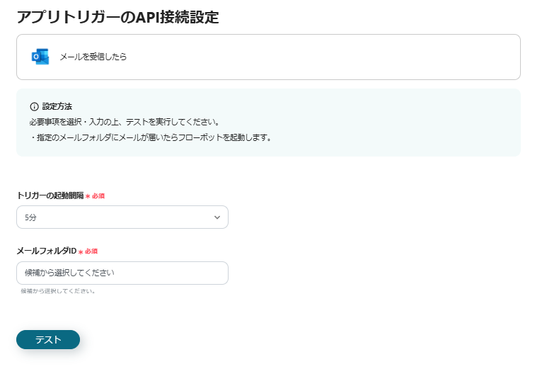アプリトリガーのAPI接続設定が表示されるので入力を進めましょう。