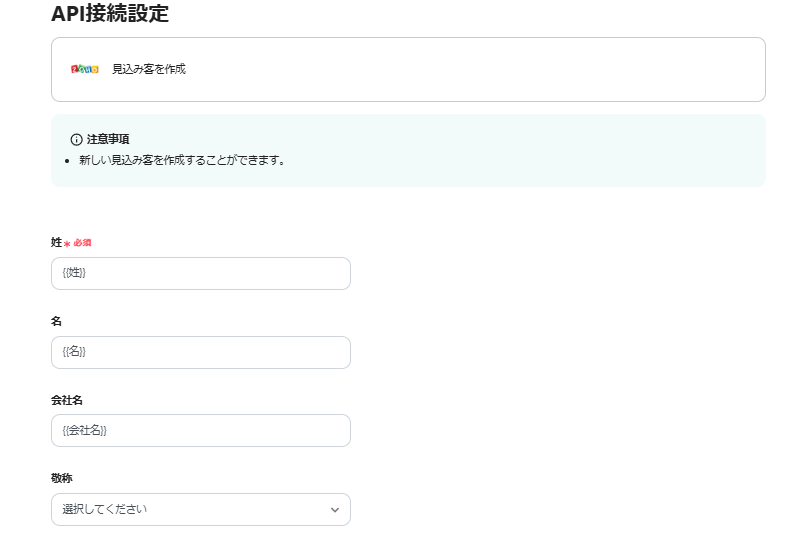 メールから取得した書名のテキストデータを元にZoho CRMにリードを登録するよう内容が入力されています。