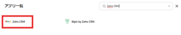 検索窓にZoho CRMを入力し、表示された候補をクリックしましょう。